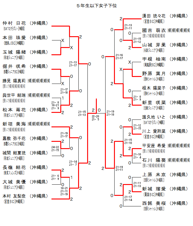 | 5GK-22 | –A£Jr.[‰«“ꌧ] | V—¢ çØ | ‚Q | 21-16 21-17 | ‚O | —N“c—®X‰Ô | ‹{—¢‚a‚b[‰«“ꌧ] | |