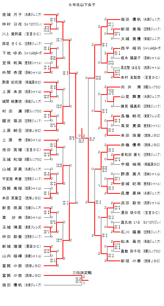 | 5GS-41 | 琉球JBC | 當銘 小奈 | 2 | 16-14 15- 1 | 0 | 玉城 璃星 | 美東フレンズ | |