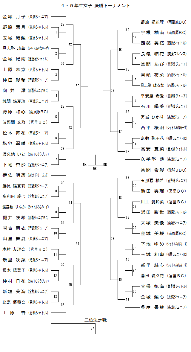 | G45-19 | 那覇Jr.BC | 嘉数弥千花 | 高安 夏菜 | 豊見城シャトル | ||||